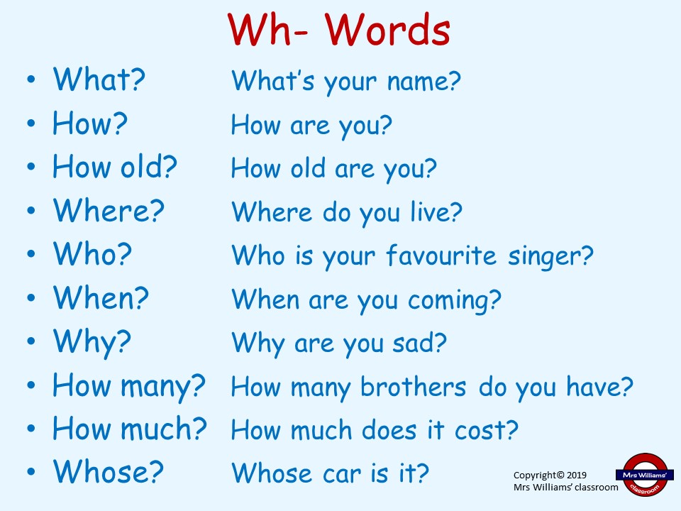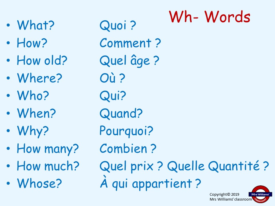 Pour poser une WH- question,  il suffit de bien connaitre l'ordre des mots qui la compose.